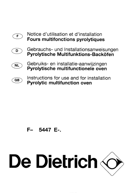 Telecharger DE DIETRICH FW5447E3 Mode emploi Anglais (15 Pages) 12.90 EUR