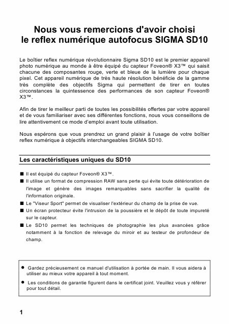 SIGMA SD10 Mode emploi Français