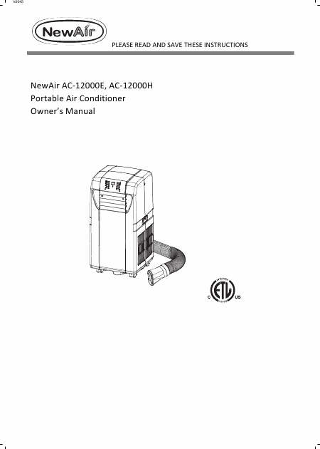 Telecharger NEWAIR AC-12000H Mode emploi Anglais (15 Pages) 12.90 EUR