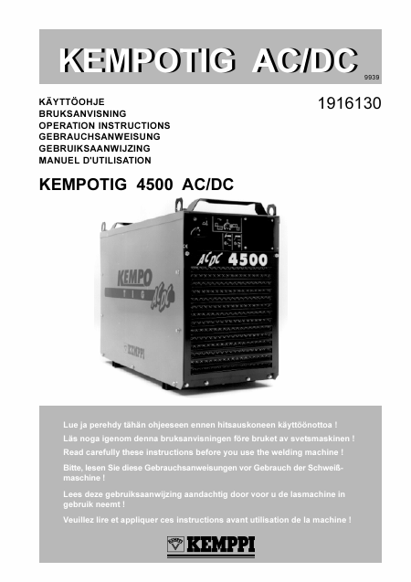 KEMPPI KEMPOTIG 4500 AC/DC Anleitung Englisch