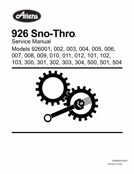 ARIENS 926 Sno-Thro Manual de serviço Inglês