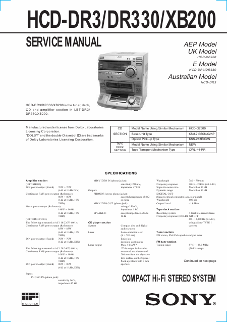 Telecharger SONY HCD-DR3 Manuel de service Anglais (52 Pages) 15.90 EUR