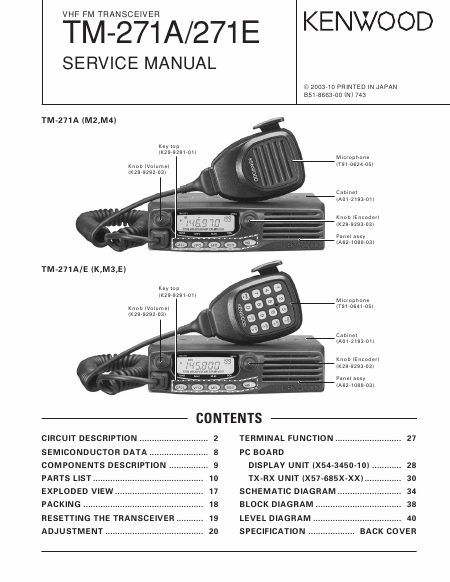 Download KENWOOD TM-271A Serviceanleitung Englisch (46 Seiten) 39.90 EUR