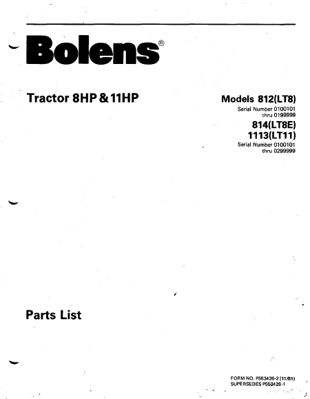 BOLENS 812 (LT8) Ersatzteile Englisch