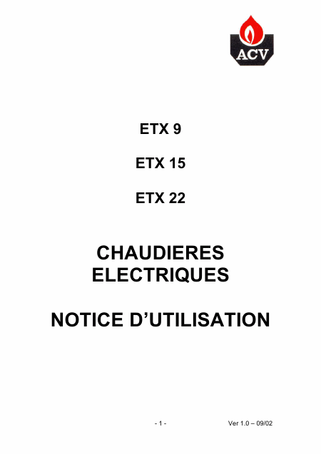 Baixar ACV ETX 15 (ETX15) Manual de Instalação Francês (13 Pages) 12.90 EUR