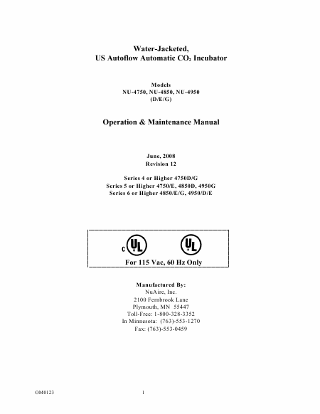 NUAIRE NU-4750 (D/E/G) Manuel de service Anglais