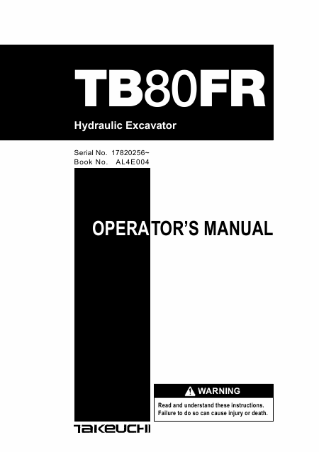 Download TAKEUCHI TB80FR Users Guide English (194 Pages) 39.90 EUR