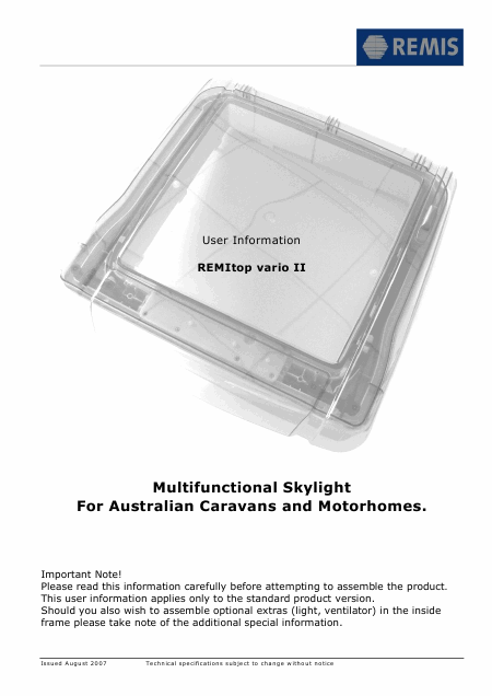 Baixar REMIS REMItop vario II Manual de Instalação Inglês (7 Pages) 12.90 EUR
