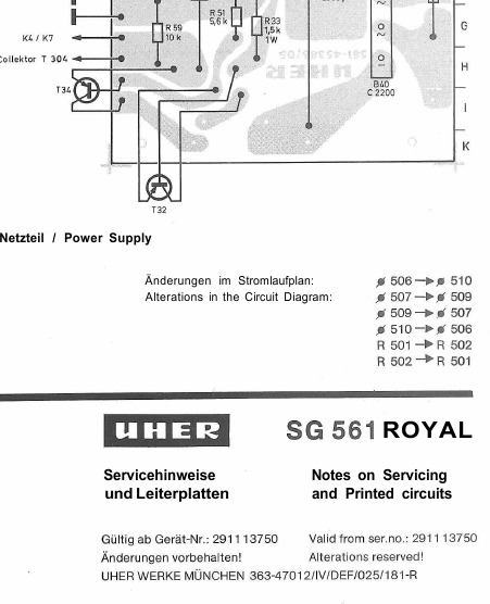 UHER SG 561 Royal (Service Notes) Diagramas Alemão