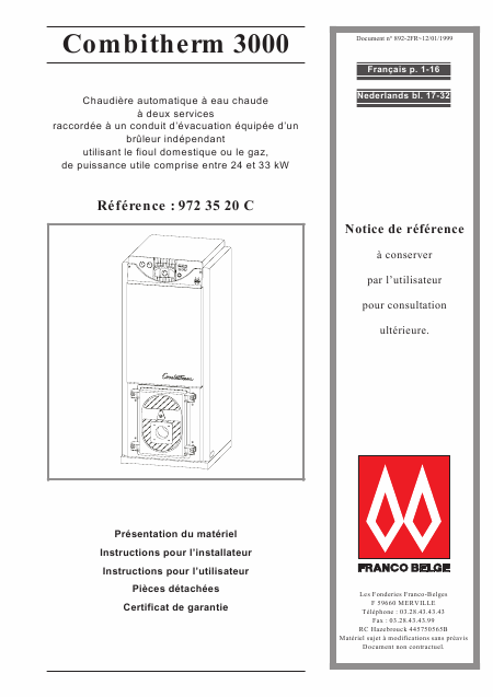 Download FRANCO-BELGE Combitherm 3000 Anleitung Französisch (16 Seiten) 15.90 EUR