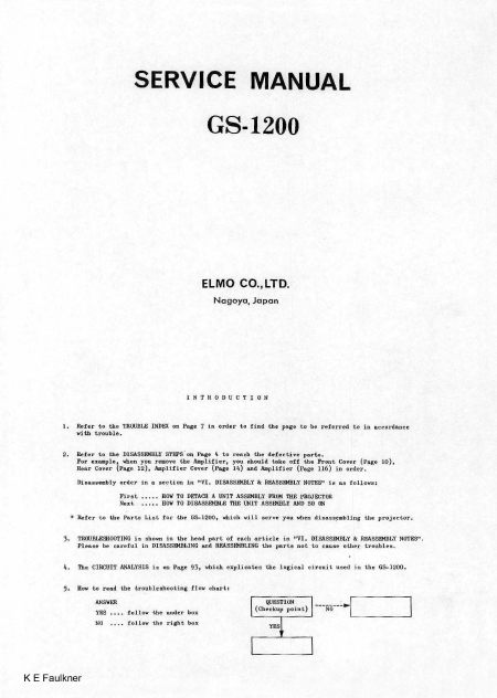 Telecharger ELMO GS-1200 Manuel de service Anglais (97 Pages) 59.90 EUR