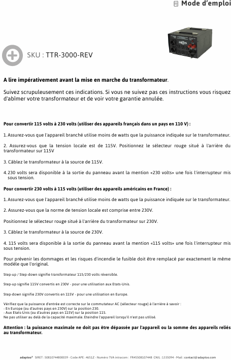 US-TRONIC TTR-3000-REV Instruções Francês