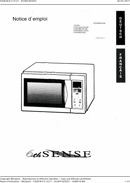 Descargar WHIRLPOOL AVM 918 Guía del usuario Francés (23 Páginas) 39.90 EUR