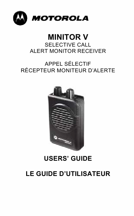 Telecharger MOTOROLA Minitor V Mode emploi Français (17 Pages) 15.90 EUR
