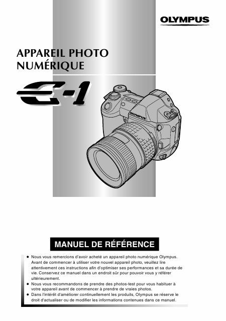 OLYMPUS E-1 (Manuel de r�f�rence) Users Guide French