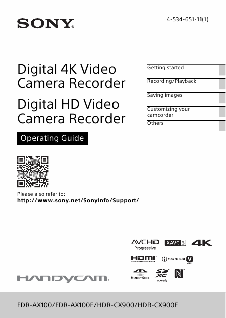 SONY HDR-CX900 Liste pieces detachees Anglais