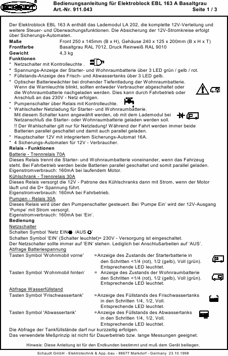 Descargar SCHAUDT EBL 163 Guía del usuario Alemán (4 Páginas) 15.90 EUR