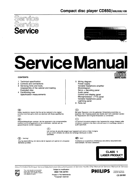 Telecharger PHILIPS CD850 Manuel de service Anglais (52 Pages) 15.90 EUR