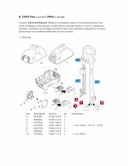 KARCHER K 390 M Lista de piezas de repuesto Inglés