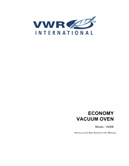 VWR 1400 E (1400E) Mode emploi Anglais