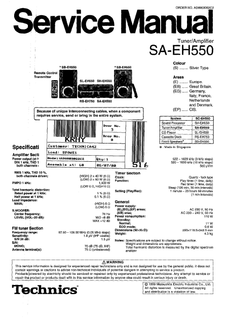 TECHNICS SA-EH550 Manual de serviço Inglês