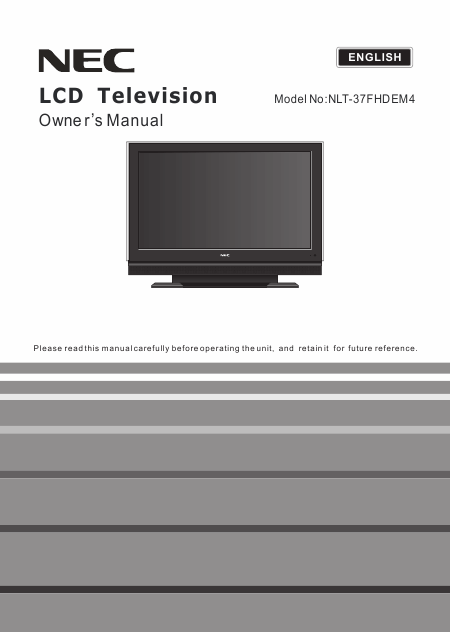 NEC NLT-37FHDEM4 Mode emploi Anglais