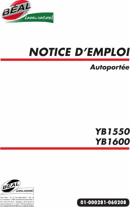 Scaricare YVAN BEAL YB 1550 Istruzione Francese (26 Pagine) 15.90 EUR