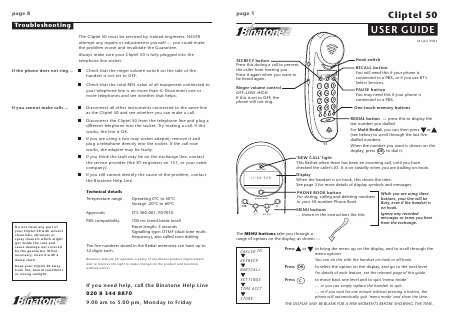 BINATONE Cliptel 50 Instruções Inglês