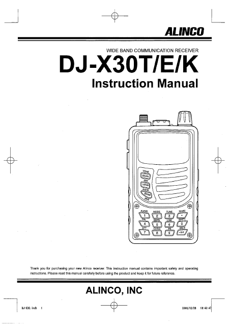 Baixar ALINCO DJ-X30 Instruções Inglês (88 Pages) 12.90 EUR