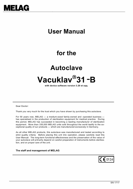 Scaricare MELAG Vacuklav 31-B Istruzione Inglese (48 Pagine) 39.90 EUR