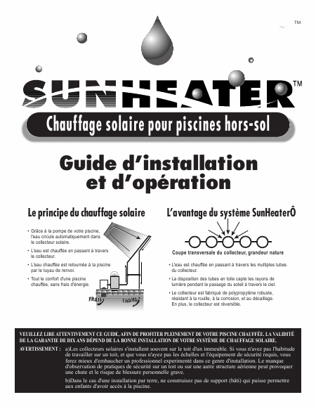 SUNHEATER SunHeater� Anleitung Französisch
