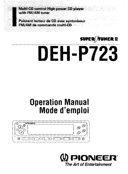 PIONEER DEH-P723 Mode emploi Anglais