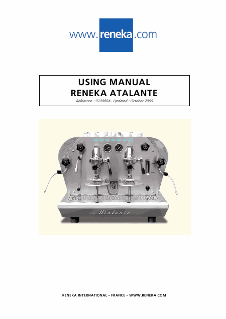 Scaricare RENEKA ATALANTE Istruzione Inglese (10 Pagine) 12.90 EUR