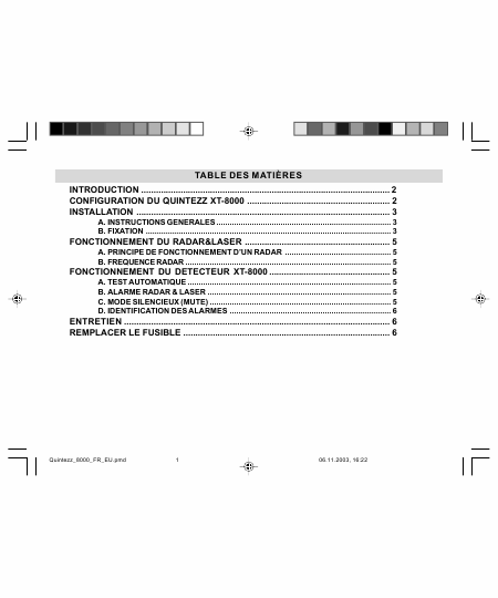 Scaricare QUINTEZZ XT-8000 Istruzione Francese (7 Pagine) 12.90 EUR