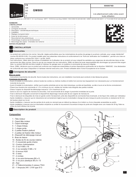 Descargar SIMU GM800 Manual de instalación Francés (12 Páginas) 39.90 EUR