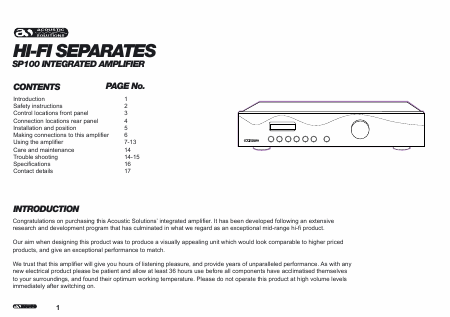 Baixar ACOUSTIC SOLUTIONS SP100 Instruções Inglês (17 Pages) 12.90 EUR