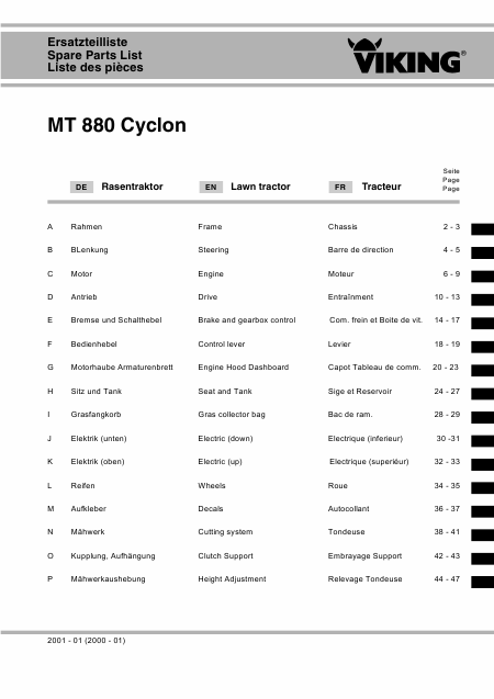 Telecharger VIKING MT 880 Cyclon Liste pieces detachees Français (48 Pages) 15.90 EUR