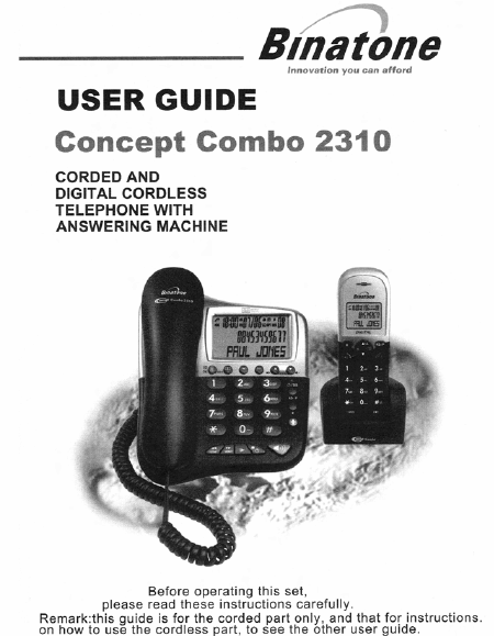 Baixar BINATONE 2310 Concept Combo Instruções Inglês (44 Pages) 39.90 EUR