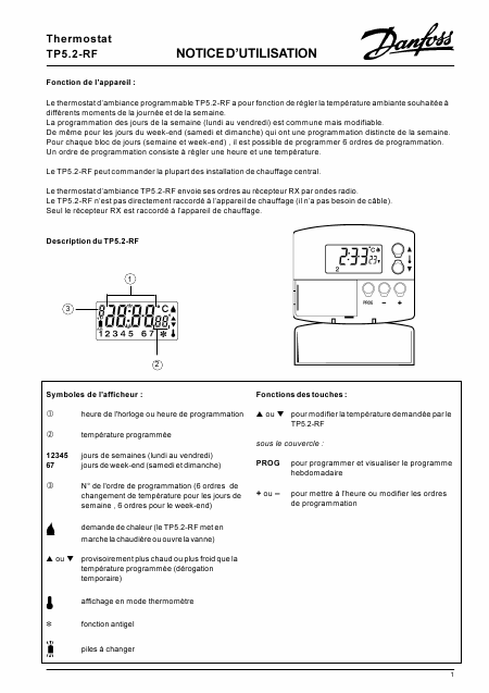 Scaricare DANFOSS TP5.2-RF (TP52RF) Istruzione Francese (3 Pagine) 12.90 EUR