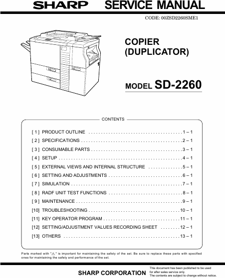 Descargar SHARP SD-2260 Manual de taller Inglés (256 Páginas) 39.90 EUR