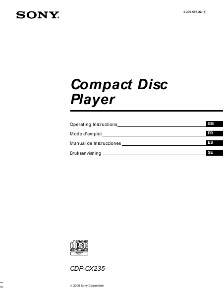 SONY CDP-CX235 Mode emploi Anglais