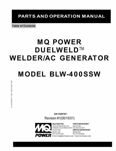 Telecharger MULTIQUIP BLW-400SSW Mode emploi Anglais (138 Pages) 39.90 EUR