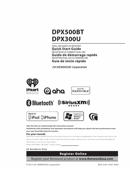 KENWOOD DPX500BT Guía del usuario Inglés