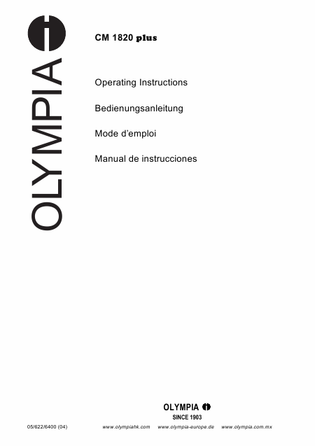 Download OLYMPIA CM 1820 Plus Users Guide French (59 Pages) 15.90 EUR
