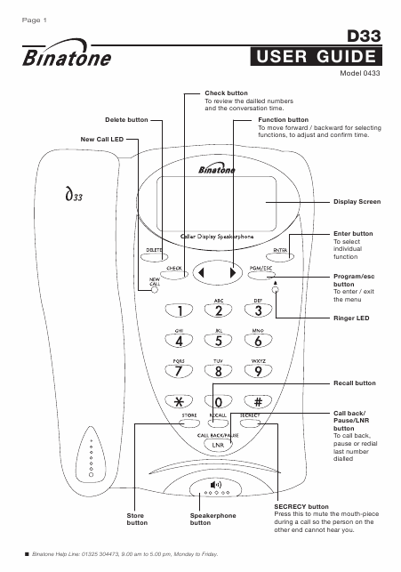 Baixar BINATONE D33 (0433) Instruções Inglês (8 Pages) 15.90 EUR