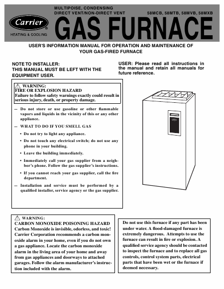 Download CARRIER 58MXB WeatherMaker Users Guide English (12 Pages) 15.90 EUR