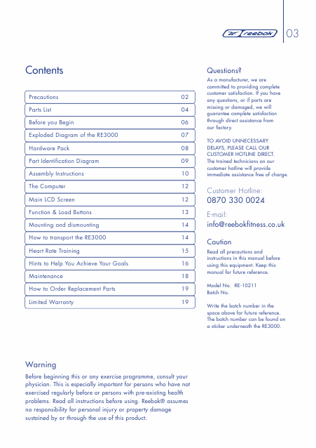Baixar REEBOK RE-10211 Instruções Alemão (12 Pages) 15.90 EUR