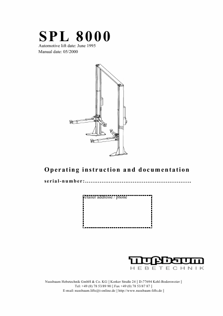 NUSSBAUM SPL 8000 Mode emploi Anglais