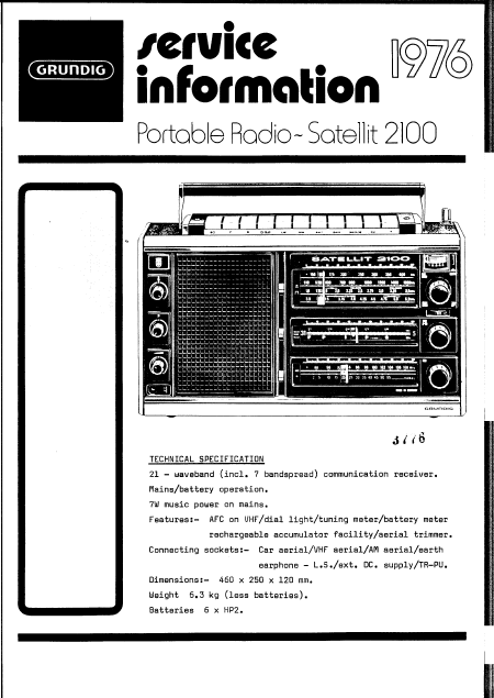Baixar GRUNDIG Satellit 2100 Manual de serviço Inglês (24 Pages) 59.90 EUR