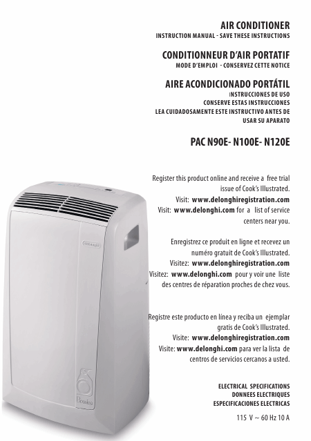 DELONGHI PAC-N120E Mode emploi Anglais